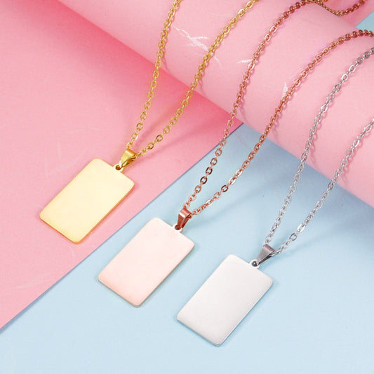 Engravable Stainless Steel Rectangle Pendant Necklace 28*16.5 mm (3Pcs)